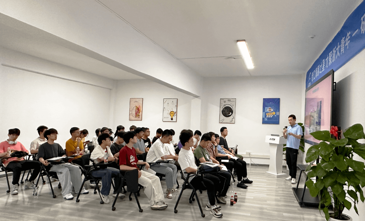 活动伊始,海豚之星AiTEN 程总以宏观的视野、清晰的脉络,生动描绘了公司在智能物流领域的战略布局、核心价值与未来愿景。这场高屋建瓴的分享,不仅让同学们了解了海豚之星的成长与抱负,更激发了大家对智能科技产业化应用的深入思考,为后续的深入交流奠定了坚实基础。