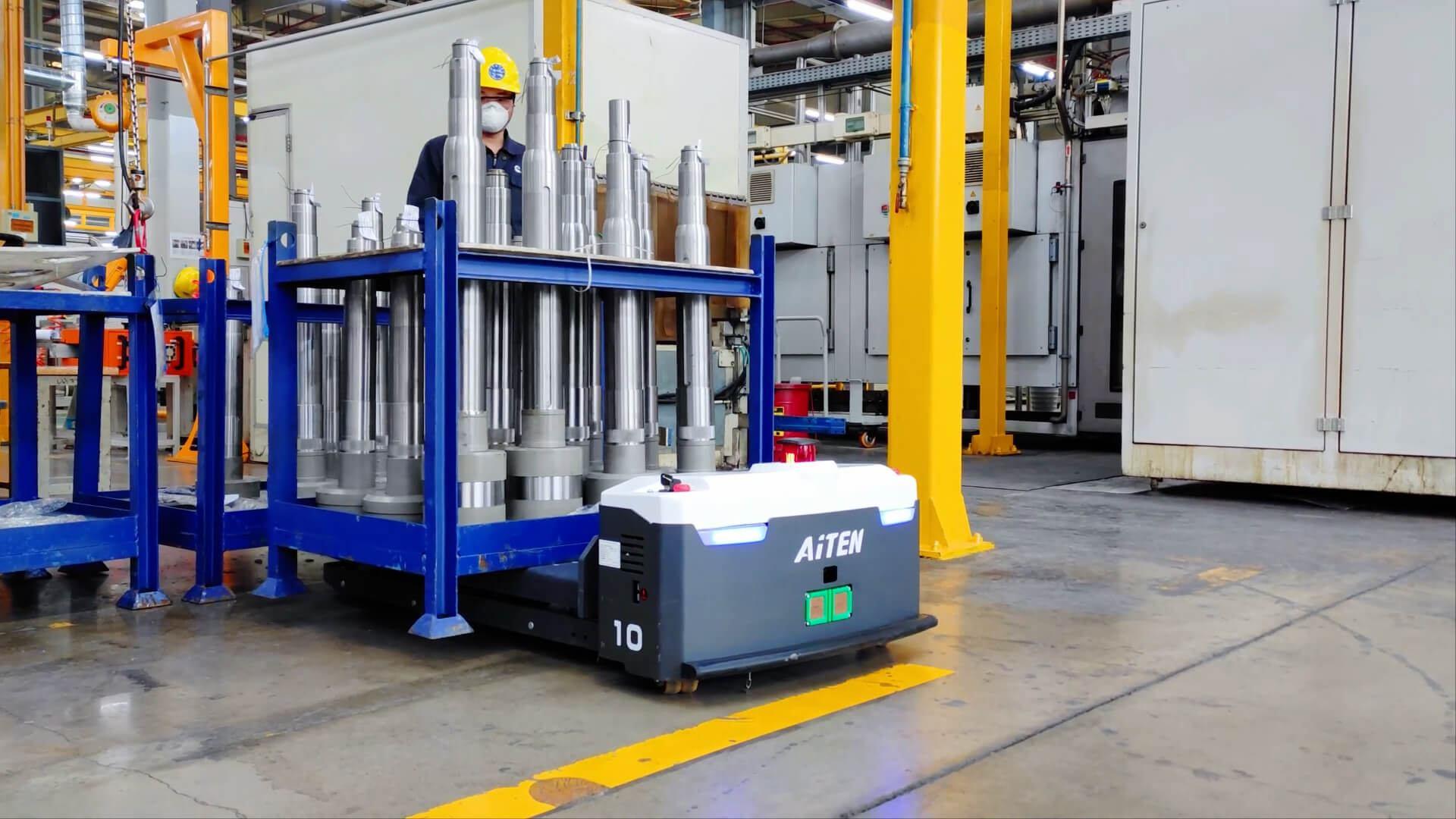 案例: 在汽车零部件工厂,AiTEN海豚之星无人叉车执行零部件的搬运任务,既提高安全性,也确保生产节拍不被打断。